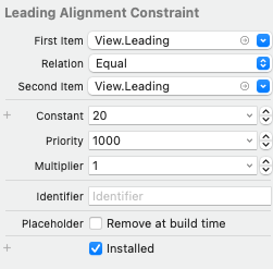 AutoLayout을 설정할 때, Inspector의 Constraints를 더블 클릭하면 세부 설정을 할 수 있다.