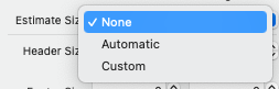 우선, 코드로 레이아웃을 설정하기 전에 Estimate Size를 None으로 설정해야 한다.