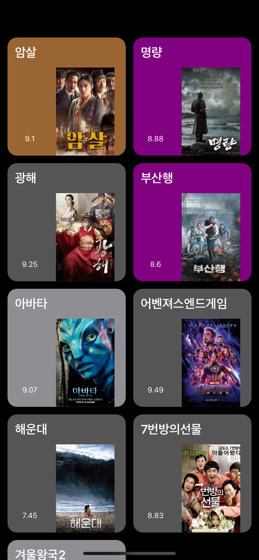 셀의 컬러는 colorList를 만들어 어두운 톤의 시스템 컬러를 몇개 추가한 뒤, randomElement로 설정해주었다.