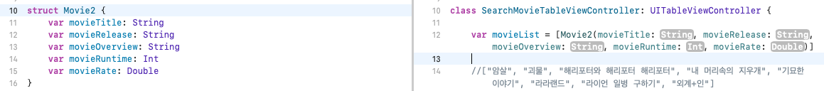 그 다음 movieList의 정보를 아래의 cellForRowAt 메서드 내부에서 사용하면 된다.