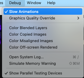 - Slow Animations : 시뮬레이터 매우 느리게 실행하기
