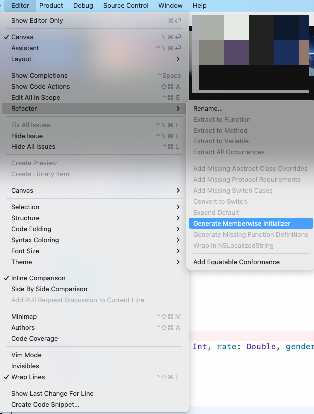클래스 이름 더블클릭 후 해당 버튼 누르면 이니셜라이저가 자동으로 작성된다.