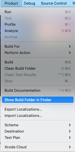 - Show Build Folder in Finder : 빌드 폴더 바로 보기