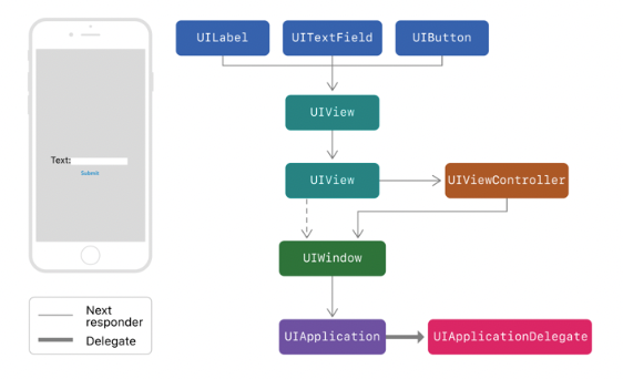 UIApplication, UIViewController 및 UIWindow를 포함한 모든 UIView 객체는 모두 리스폰더이며, Responder Object는 UIResponder에서 상속된 class들의 인스턴스이다.