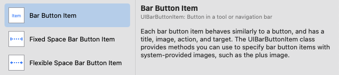 툴바를 뷰 위에 얹고, 그 안에 Bar Button Item을 추가해서 쓸 수 있다.