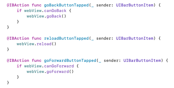 - 웹뷰 컨트롤러웹뷰 기능 구현 (뒤로가기, 새로고침, 앞으로가기)