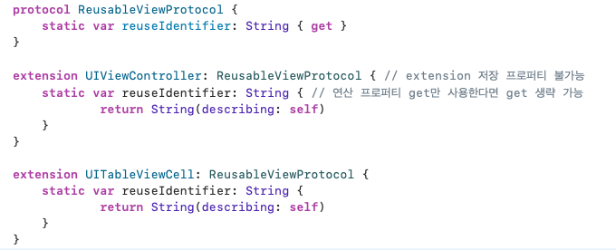 여태까지는 리터럴한 문자열 사용을 줄이기 위해, static let을 통해 클래스마다 Identifier를 저장해서 사용했었다.