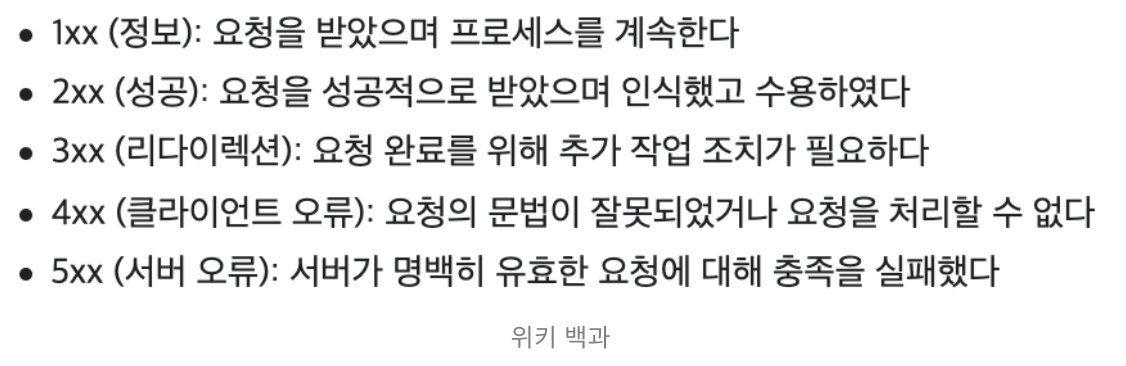 Status Code (상태 코드) 란, 클라이언트와 서버 간 통신의 성공/실패 여부 및 오류 원인을 알려주는 코드이다.