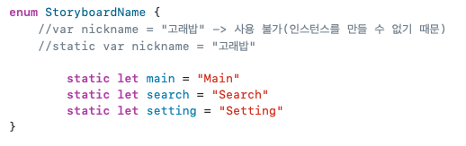 만약 enum의 case를 활용해서 StoryboardName을 관리했을 때 어떤 문제가 있을 수 있을까?