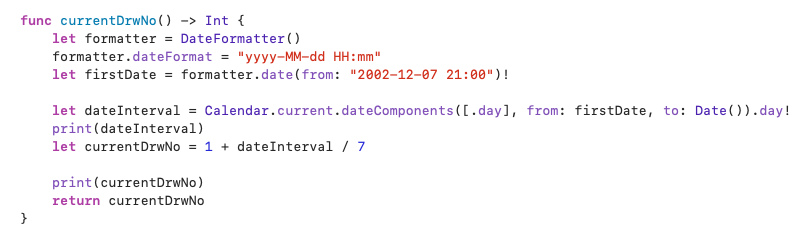- Lottery API 구현하기(도전) 앱이 실행되어 처음 네트워크 통신을 할 때 매주 토요일 진행되는 로또 회차에 맞춰, 가장 최근 회차 가져오기