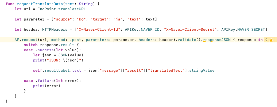 이번에 구현할 TranslateView는 네이버 Papago API를 이용하는데 전달하는 값이 조금 다르다.