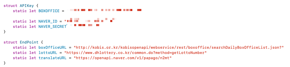 해당 APIKey Struct가 있는 Constant 파일에는 다른 Struct도 작성되어 있고, 이 파일은 이미 GitHub에 올라가있는 상태였다.