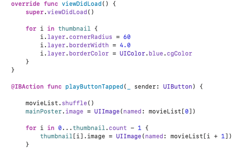 오늘의 과제는 어제 만들었던 화면의 Play 버튼을 누르면 메인 포스터를 포함한 4개의 썸네일이 랜덤으로 바뀌는 코드를 짜는 것이다.