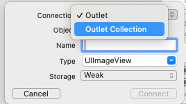 이렇게 하면 아웃렛변수가 배열이 된다. 다음은 나머지 썸네일들을 전부 Outlet Collection에 연결해주면