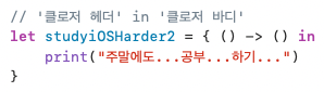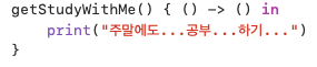 Trailing Cloure : 함수 뒤에 클로저가 실행되기 때문에 후행 클로저라고 한다.