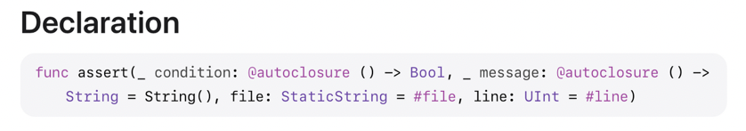 하지만 @autoclosure가 붙어 있으므로, 중괄호를 생략하고 조금 더 간단하게 작성할 수 있다.