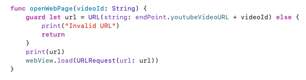 그리고 openWebPage를 실행시키며, 받아온 비디오 아이디를 넘겨준다.