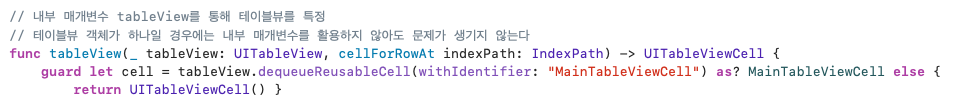 즉, cellForRowAt에서 모든 indexPath.item에 대한 조건을 작성하지 않아도 된다.