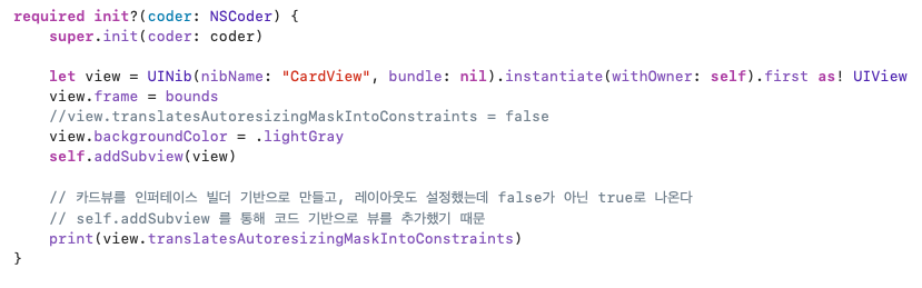 따라서 코드 기반 UI는 true일 것이고, 인터페이스 빌더 기반 레이아웃이 설정된 UI는 false일 것이다.