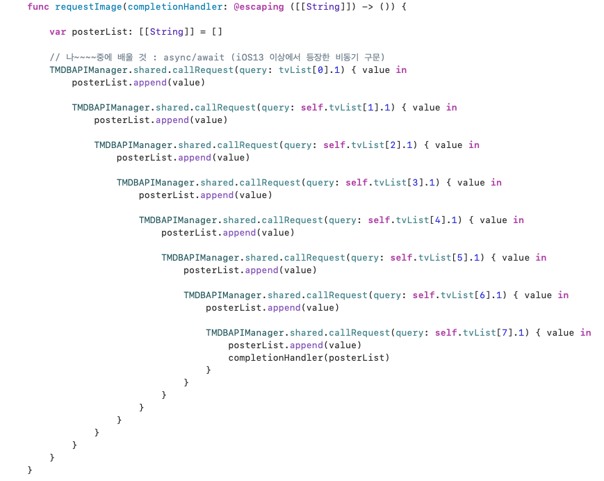 requestImage 내부 코드를 반복문을 사용하지 않고 저렇게 작성한 이유는, completionHandler이기 때문이다.