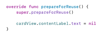 셀이 재사용 될 때 초기화 하고자 하는 값을 넣으면 셀이 재사용되며 발생할 수 있는 오류를 해결할 수 있다.