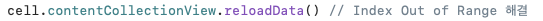 그래서 print를 통해 셀의 indexPath를 출력해보면, 요소보다 많은 수의 Index가 출력된다.