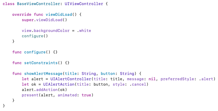 사용할 때는 UIViewController 대신 만들어놓은 BaseViewController를 상속시킨다.