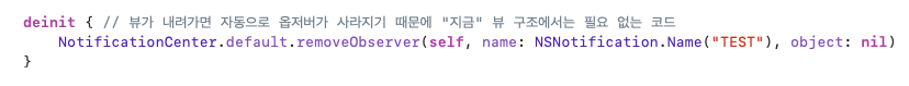 클래스 타입에서만 구현할 수 있으며, init과 반대로 클래스의 인스턴스가 메모리에서 해제되는 시점에 호출된다.