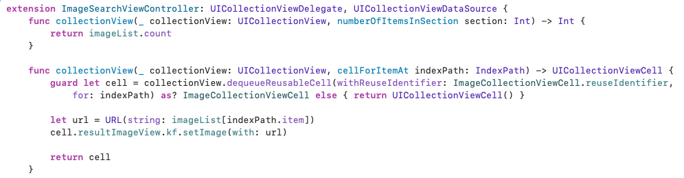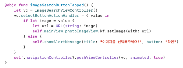 - UnsplashAPI 등을 활용해 이미지를 검색하고, 선택한 이미지가 이전 뷰컨트롤러에 반영되도록 앱 구성