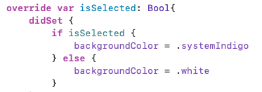 컬렉션뷰에서 셀을 선택했을 때, 선택된 셀을 사용자에게 알려주기 위해 isSelected를 오버라이드해 활용할 수 있다.