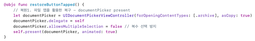 - 파일앱 (UIDocumentPickerViewController) 을 활용한 복구