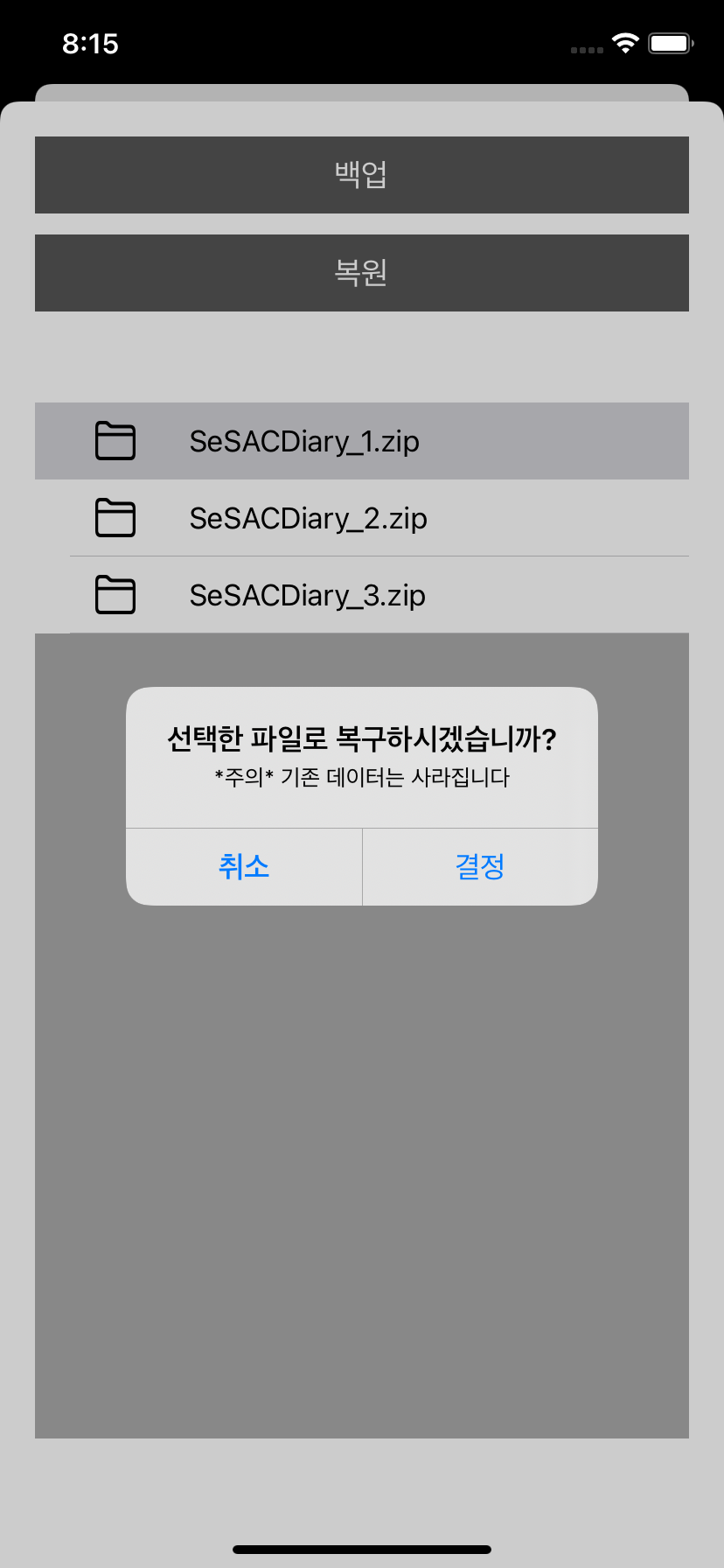 - 테이블뷰로 백업 파일 보여주고, 셀 선택하면 바로 백업하기