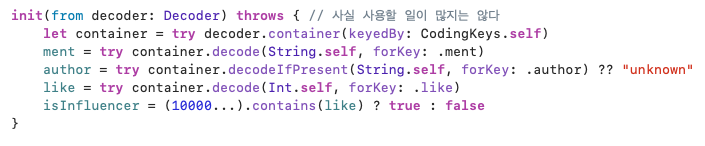 - DecodingStrategy: init(from decoder: Decoder) & decodeIfPresent