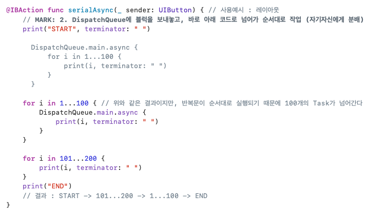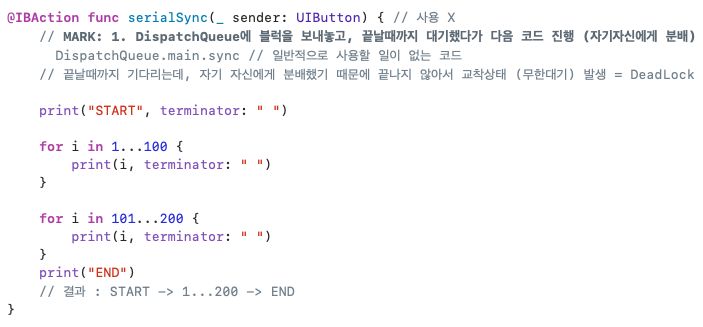 Serial : 직렬 큐 // 해당 Queue에 등록된 여러 작업을 순차적으로 실행 (= main)