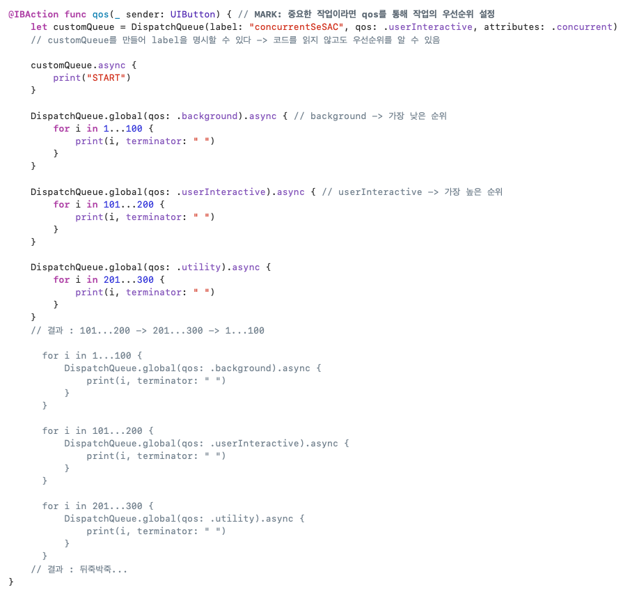 Concurrent: 동시 큐 // 해당 Queue에 등록된 여러 작업을 동시에 수행 (= global)