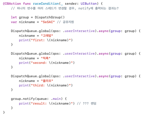 위의 Race Condition 상태, 실행 결과가 랜덤하게 나오는 것은 의도한 바가 아니다.
