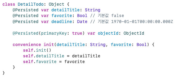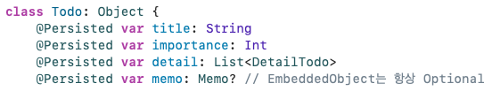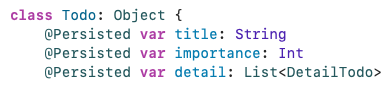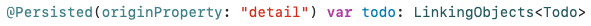 Realm에서 테이블 구조는 일반적으로 단방향으로 정의되어 있기 때문에, DetailTodo의 입장에서 Todo를 연결하고 명시적으로 사용하기 위해서는 Inverse Relationshipdp 대한 정의를 해주어야 한다.
