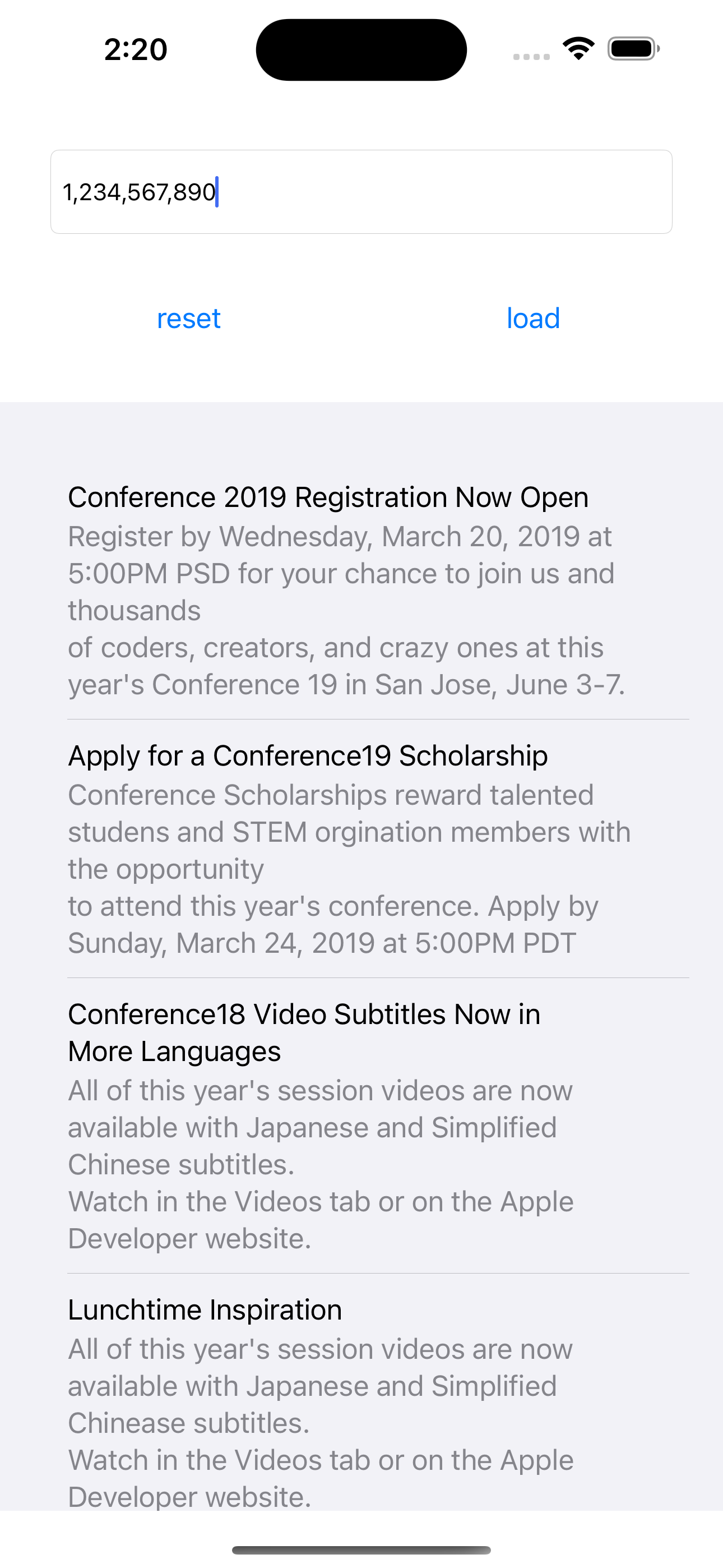 두번째로는, News 라는 Model을 활용해 데이터를 보여주고, reset/load 버튼으로 보여줄 데이터를 재설정 하는 기능이다.