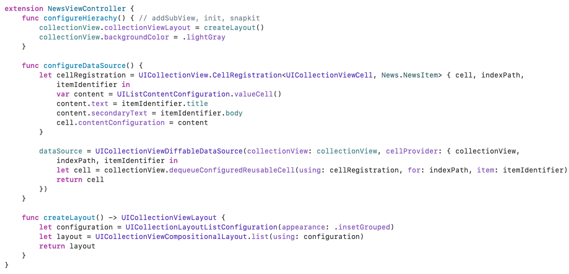 여기서 주의해야 할 점은, 커스텀 셀이 아닌 UIListContentConfiguration 를 이용해 collectionView 를 구성했을 경우 그렇게 유용하게 사용했던 Kingfisher 를 사용하지 못하게 된다.