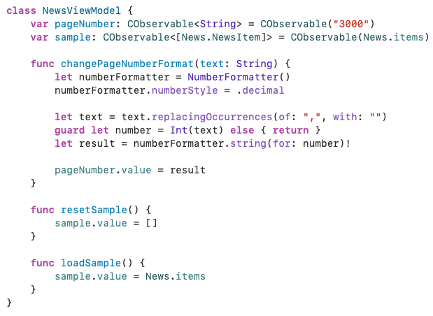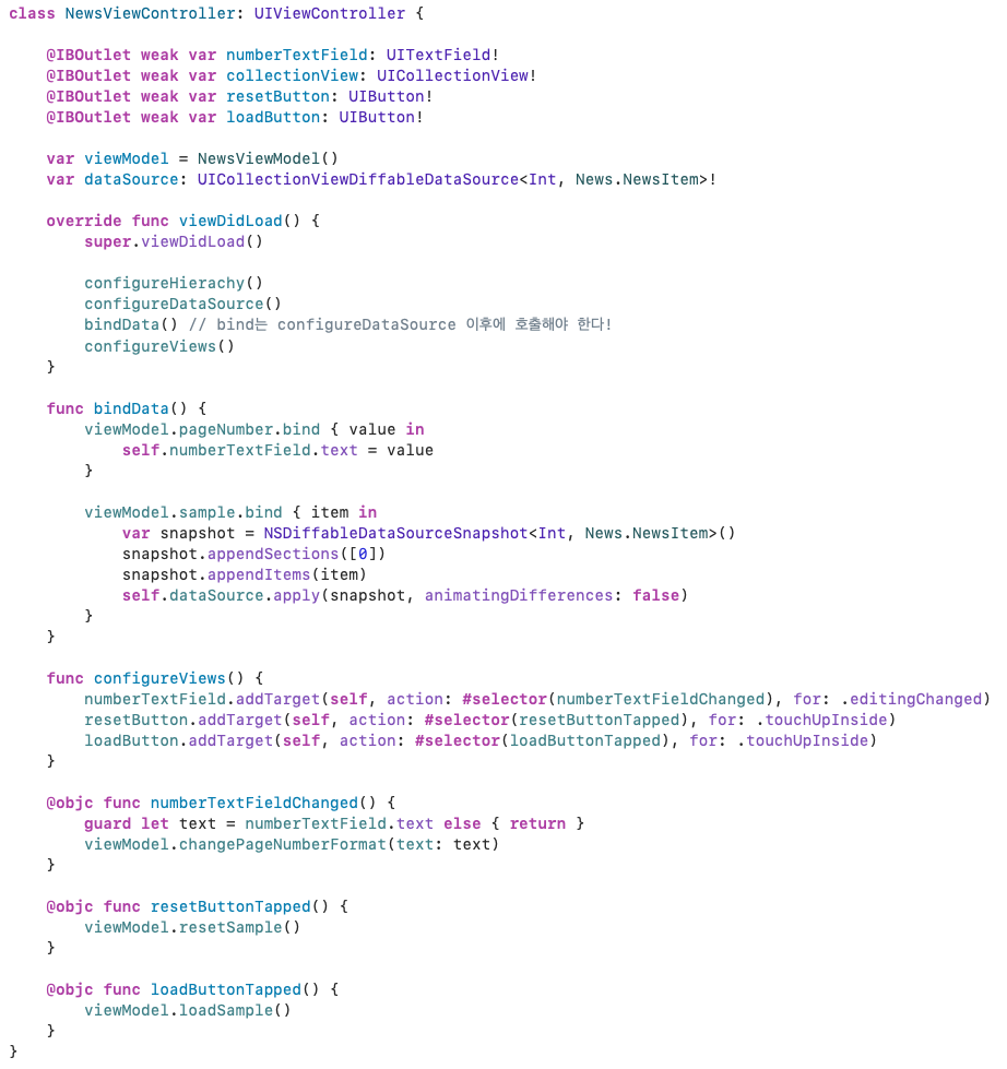 그리고 viewModel에 pageNumber를 선언/초기화 후, pageNumber가 변경되면 textField의 text도 변경하도록 bind 한다.