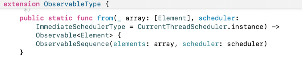 just와 마찬가지로, ObservableType Protocol의 Type Method로 선언되어 있다.