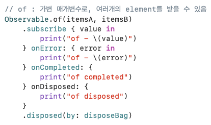 array Parameters로 배열을 받고, 배열의 각 element를 Observable로 리턴한다.