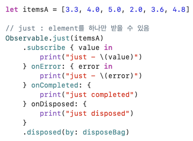 Observable의 next 이벤트에 대한 emit이 끝나면, completed ➡️ disposed로 Sequence가 정상적으로 종료된다.