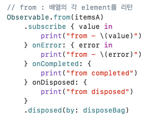 array Parameters로 배열을 받고, 배열의 각 element를 Observable로 리턴한다.