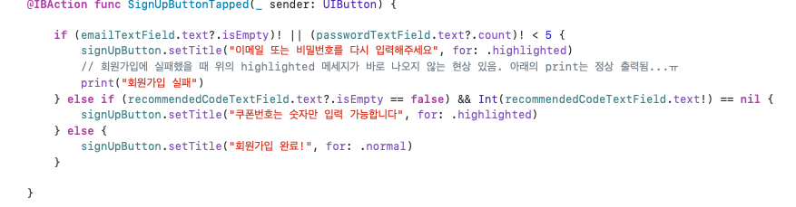 검색 버튼을 눌렀을 때, 우선 조건문으로 TextField가 비어있지 않은지 판단한다.