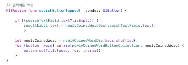 결과를 보여줄 신조어 리스트는 Dictionary로 직접 작성했다.