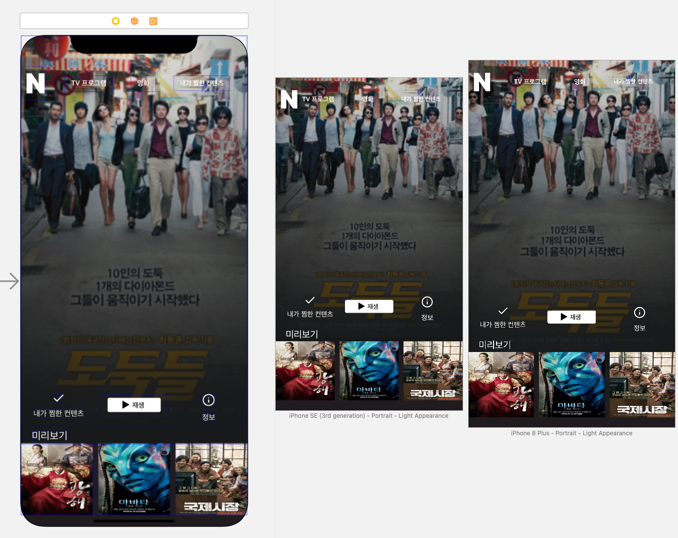 이미 구성된 View들을 하나하나 잡아주려니 신경 쓸 것도 많고 어려웠는데, 특히 미리보기 아래의 세개의 View가 난관이었다.