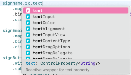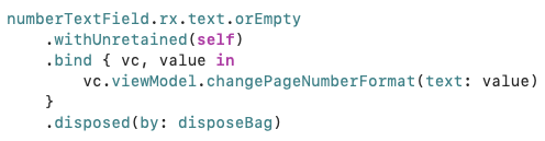 이렇게 하면 String 타입으로 변경이 가능하고, label.rx.text로 간단하게 bind 해줄 수 있다.