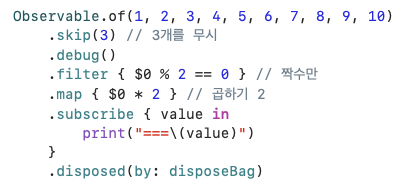 rx를 통해 코드를 구성할 때, debug() 를 통해 코드의 흐름을 확인할 수 있다.