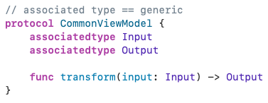 Generic과 유사한 형태로, Protocol에서 사용될 타입에 대한 네임스페이스, placeholder 이다.